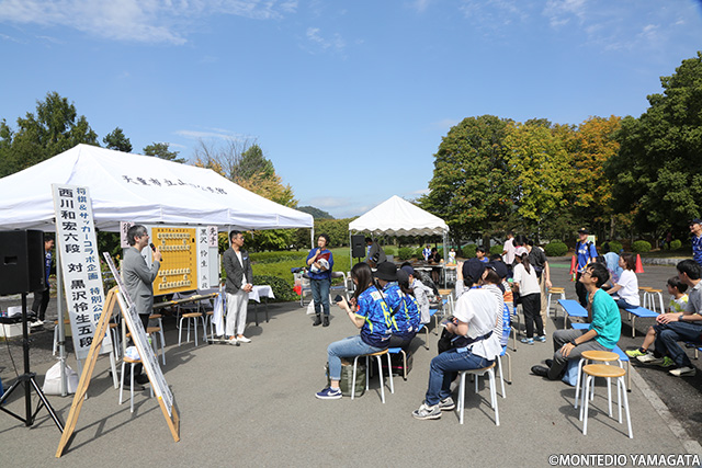 もんてらんどではすっかりお馴染みとなった「将棋×サッカーコラボイベント」を開催。プロ棋士による特別公開対局やトークショー、指導対局と言ったイベントに老若男女問わずたくさんの方が集うのはさすが将棋駒の街・天童です。