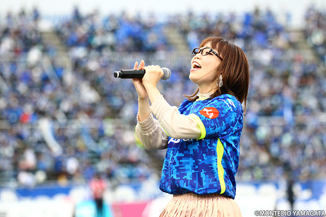 ハーフタイムには山形が誇る歌姫 朝倉さやさんが登場。その歌声でチームとサポーターに大きな力を与えてくれました。
