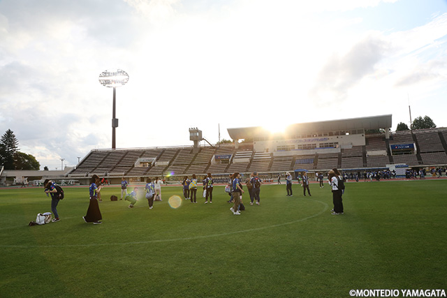 夕暮れのピッチでは#山形女子日和最後のイベントとしてピッチ開放が行われ、選手たちが走るフィールドの感触を感じて頂きました。