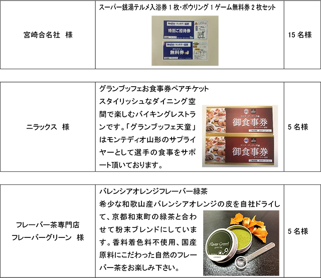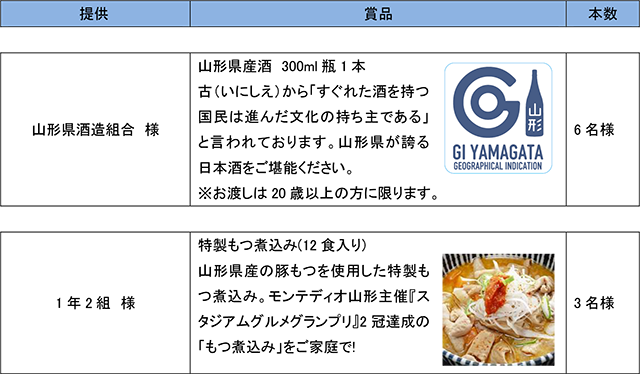 モンテディオ山形の勝利に貢献した選手が表彰されます。また、「おいしい山形サポーター賞」として、ご来場いただいたお客様も試合当日、入場ゲートでお配りしているマッチデープログラムにスタンプがあれば見事、大当たり!当選された方は総合案内にお越しください。 ※賞品は後日郵送となります。