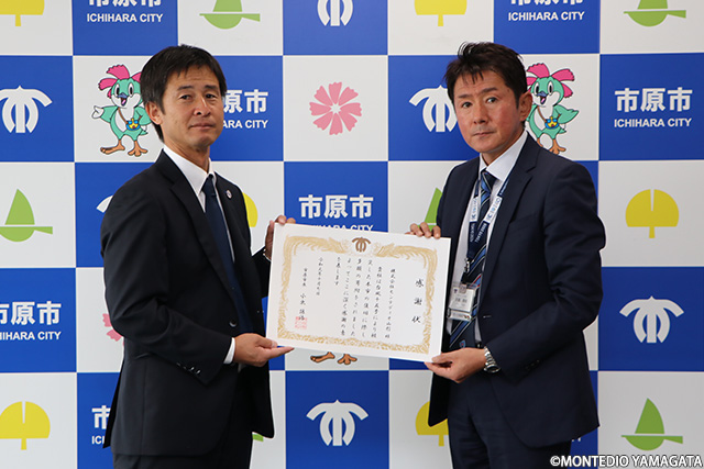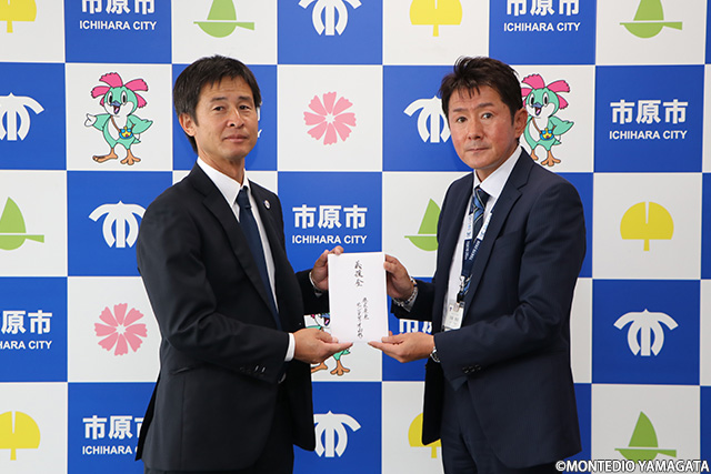 2019年9月29日ホームゲーム甲府戦での「令和元年台風15号」災害義援金募金活動で頂戴した義援金について、皆様からの義援金に選手・スタッフ、クラブからの義援金を加え、千葉県市原市様に20万円、館山市様に20万円を先日お届けしました。