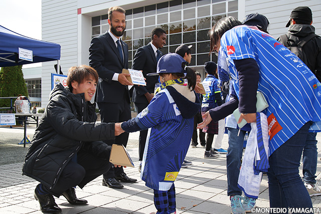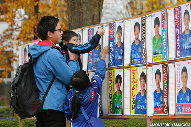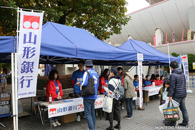 この試合は株式会社山形銀行様による「山形銀行プレゼンツマッチ」として開催。中央エリアの特設ブースでは「やまぎんアプリE-Branch」「やまぎんPayB」をダウンロード頂いた方先着2,000名様にオリジナルミニタオルがプレゼントされました。