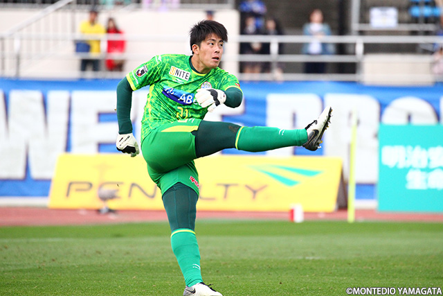 相手カウンターからの決定的なピンチをしっかりと守り切るなどこの試合でも守護神の名に相応しいプレーを見せた櫛引政敏選手。またしてもクリーンシート達成です。