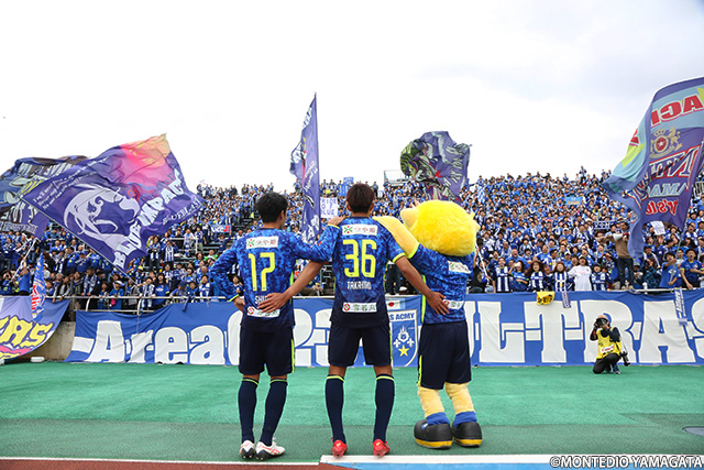 今季のJ2リーグ戦も残り5試合、シーズンの終盤戦を迎え、J1昇格争いが激しさを増しています。ホームゲームはこの試合を含めて3試合となりますが、『#行ぐべJ1』の掛け声のもと『#YAMAGATAICHIGAN』となったスタジアムで愛媛FCと対戦します。