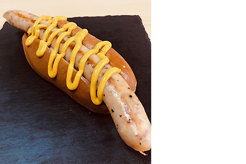 ファインのボリューム満点のソーセージとたいようパンのコラボレーションホットドックです。シンプルにマスタードのみでお召し上がりください。