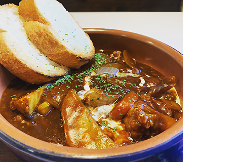 寒くなってきたこの季節に熱々をどうぞ!山形牛、野菜をやわらかく煮込みました。バケットをつけて召し上がれ!