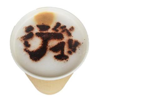 ホットカフェラテにココアパウダーでアート!観戦のお供にこれを飲んで、行ぐべJ1!