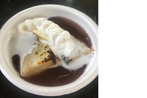 村山市特産のそば粉、でわかおりのそばでげそ天は常にあげたてを使用しております。