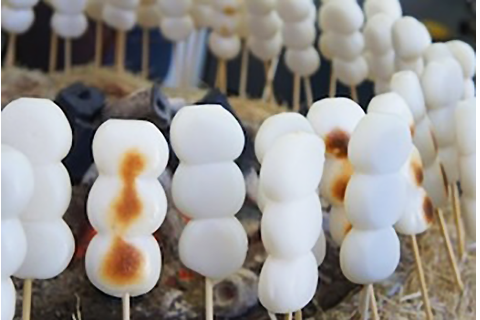 蚕の糸からコラーゲンとタンパク質を取り出し、庄内平野の米粉と混ぜた「シルクだんご」、ふっくらモチモチをご賞味ください!