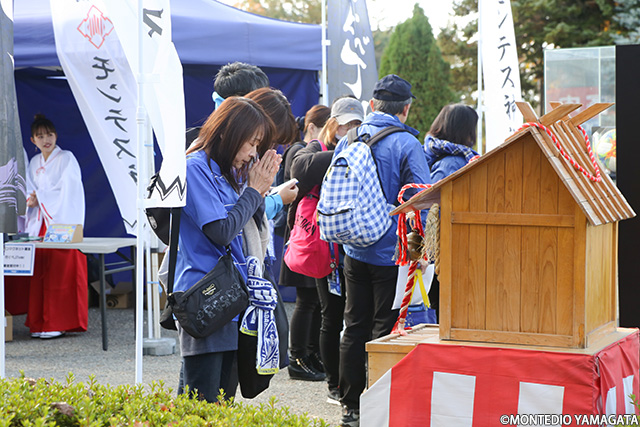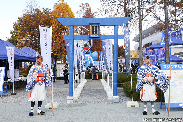 南エリアでスタジアムに来場された皆さんを迎えたのは、青い鳥居が置かれた新モンテス神社。