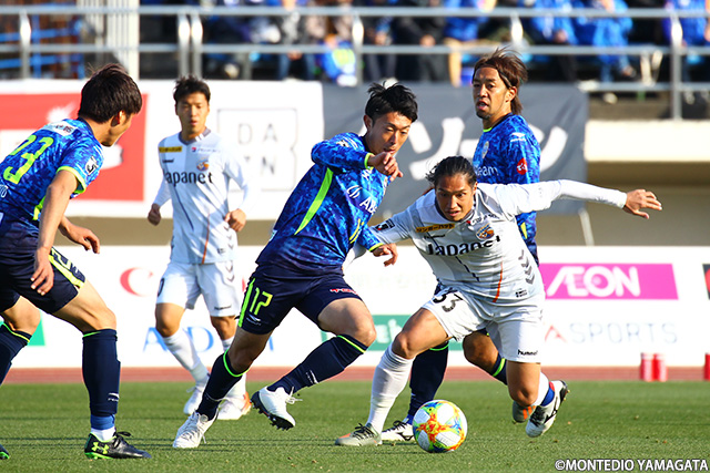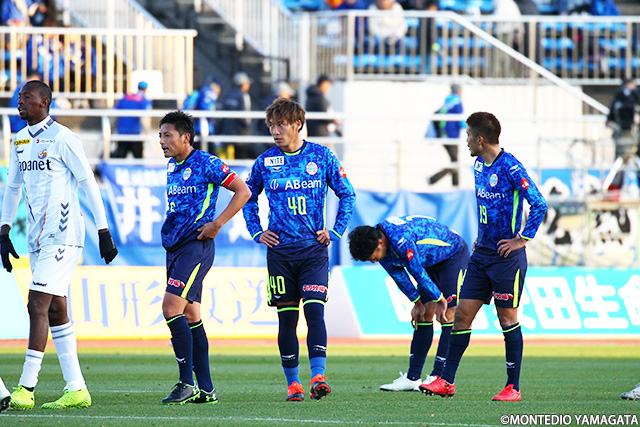 前半終了間際に同点に追いつかれてしまうと、後半にはさらに2失点してしまいスコアは1-3に。J1昇格を実現するためにも何としてでも勝点を得たい試合でしたが、厳しい展開となってしまいます。しかしそんな中でも選手たちはゴールを狙い、戦い続けます。キャプテン山田拓巳選手もなんとか状況を打開しようと走り続けます。