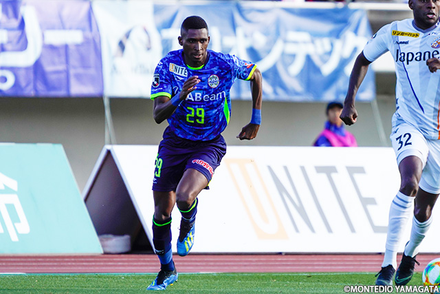 スリーバックの左として起用され、7月21日第23節岡山戦以来の試合出場となったホドルフォ選手。試合開始とともに気合の入ったプレーを見せます。