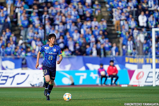 3バックの右での起用となった熊本雄太選手。厳しい状況でも、大きな声援を送り続けてくれるサポーターの力を受け、選手たちは戦い続けます。