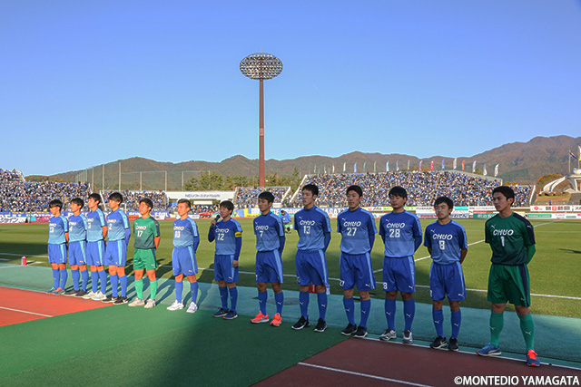 ハーフタイムには、先日全国高校サッカー選手権大会への出場を決めた山形中央高校の壮行会が行われます。山形県の代表として戦う選手たちに、スタンドからも大きな声援が掛かります。