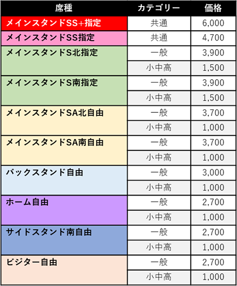 - お持ちのシーズンシートと同じ席種の座席の購入が可能です。