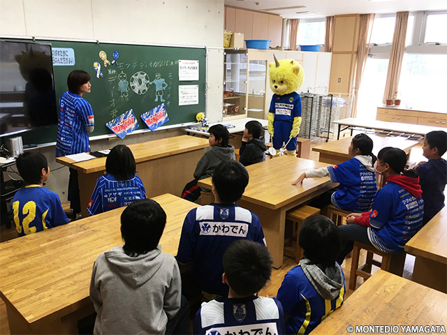 教室で児童達を待っていると、モンテディオ山形のユニフォームを着て続々と教室に入ってくる児童のみなさん。サッカークラブとしてこれほど喜ばしいことはありません。