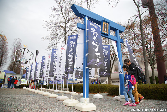 南エリアに置かれたモンテス神社にはこの試合でもたくさんの方がJ1昇格を祈願します。