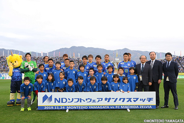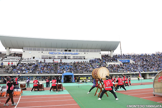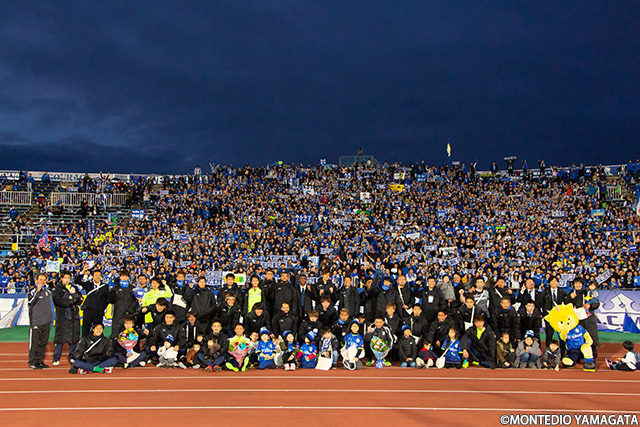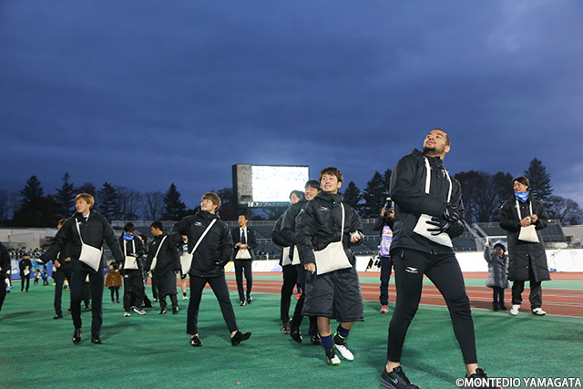 試合終了後、シーズンを締めくくるセレモニーが行われ、株式会社モンテディオ山形代表取締役相田健太郎、モンテディオ山形監督木山隆之、モンテディオ山形キャプテン山田拓巳よりご挨拶をさせて頂きました。