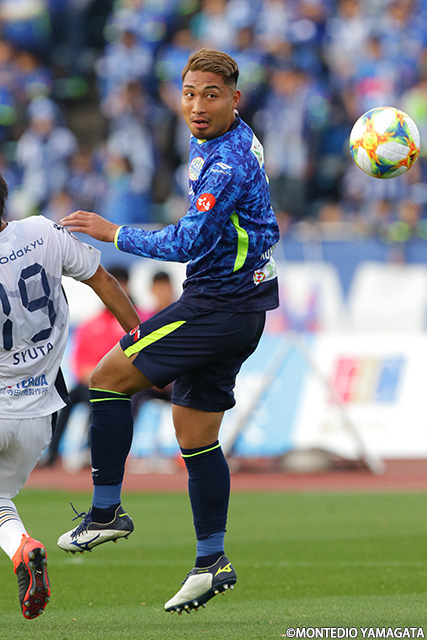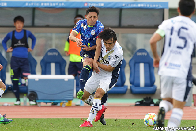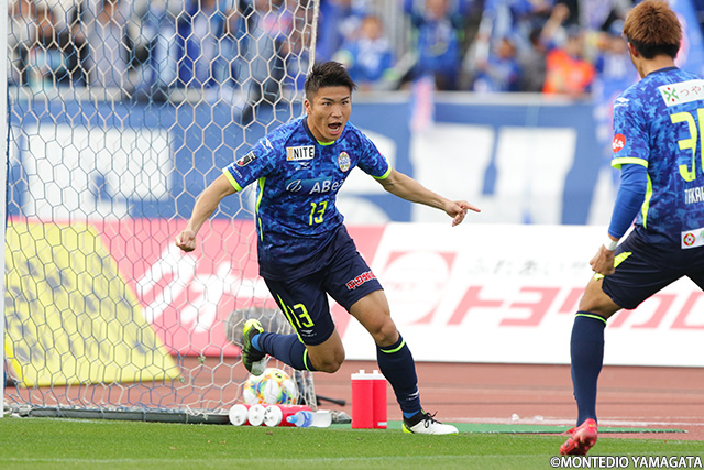 前節チームを救うハットトリックを決めた山岸祐也選手選手。攻撃の組み立ての中で大いに力を発揮し、シーズン途中で攻撃陣が大きく入れ替わった中で攻撃を支えていました。