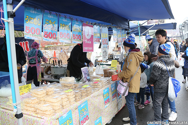 もんてらんどでは山形・宮城物産グルメ市を開催。試合に向けて両県のうんまいグルメでパワーをつけます。