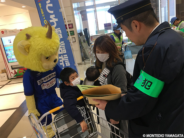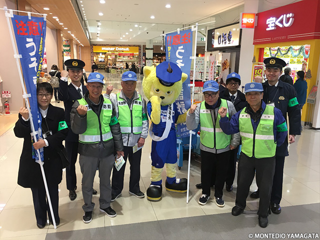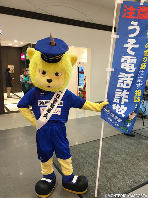 先日(2019年12月13日)、モンテディオ山形のマスコットキャラクター「ディーオ」がイオンモール天童にて天童警察署の皆様と「年末警戒強化 うそ電話詐欺被害防止広報」への協力活動を行いました。
