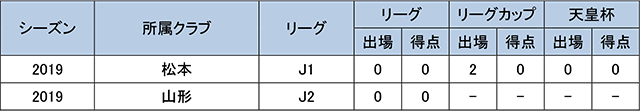 - リーグカップ戦通算2試合出場0得点