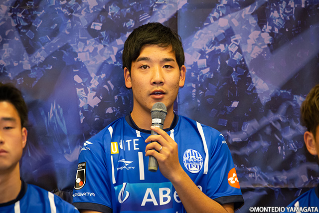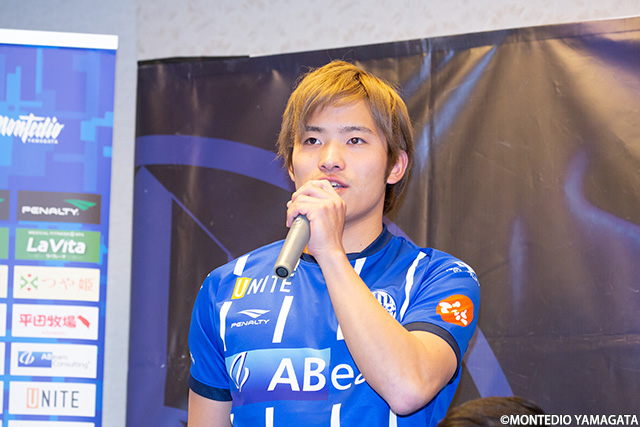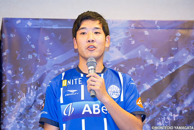 プロ1年目ですが、少しでも早く試合に出てモンテディオ山形の勝利に貢献できるように頑張ります。