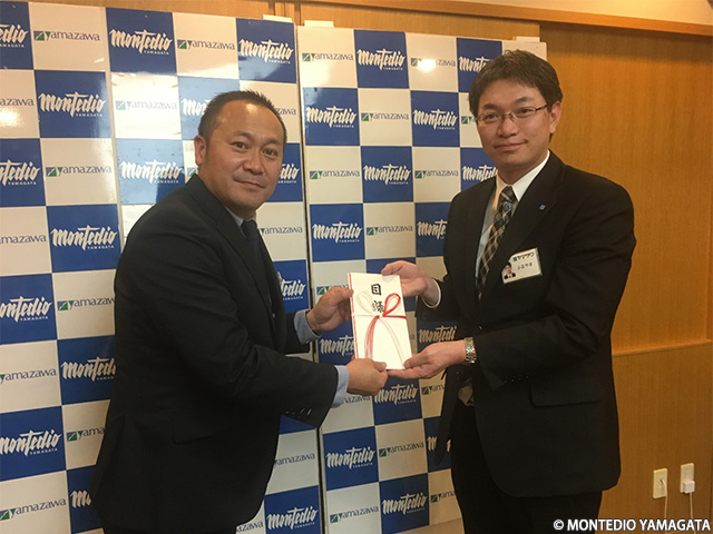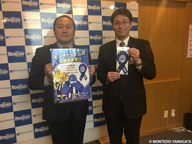 公開日 2020.02.04 株式会社ヤマザワ様よりリボンマグネット募金を贈呈いただいました 2020年1月31日(金)株式会社ヤマザワ様よりモンテディオ山形リボンマグネット募金として341,000円を同社代表取締役社長古山利昭様から頂戴いたしました。 今シーズンも引き続き株式会社ヤマザワよりリボンマグネット募金の御協力をいただくこととなりました。熱い御声援を宜しく御願い致します。 #その他 ニュース一覧