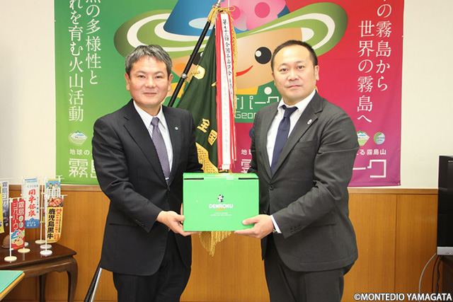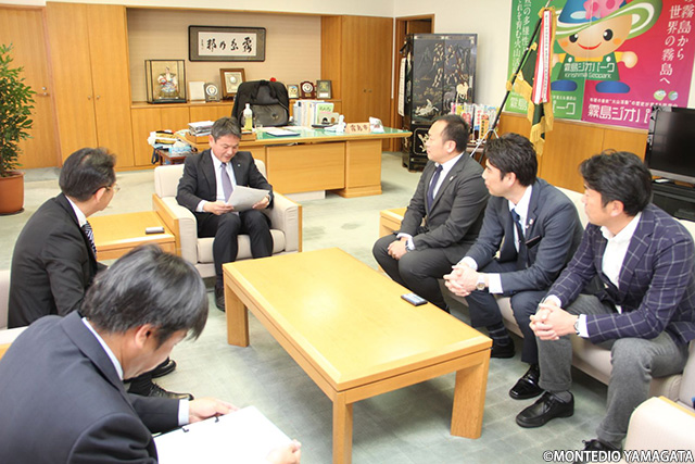 二次キャンプも折り返しを迎える2020年2月5日 鹿児島キャンプの二次キャンプ地となっている霧島市中重真一市長を弊社代表取締役社長相田健太郎が表敬訪問致しました。