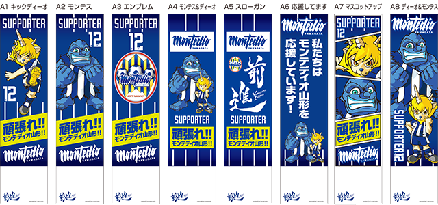 「私たちはモンテディオ山形を応援しています!」の「私たち」の部分に名入れができます。(文字数は8文字程度、ゴシック体のみ)