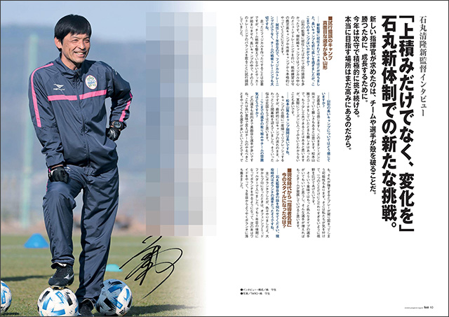 「現状維持は停滞」とした石丸新監督は、選手やチームに変わっていくための挑戦を求めています。 チームや選手が今年目指しているもの、取り組んでいくことが詰まった6ページです。 - 新加入選手インタビュー