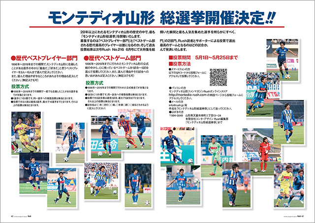 モンテディオ山形ファンマガジンRushオンラインストア http://montedio-rush.com の特設ページから投稿フォームにアクセスしてください。 - メールの方 [email protected] 宛 件名を「モンテディオ山形総選挙係」にして送ってください。