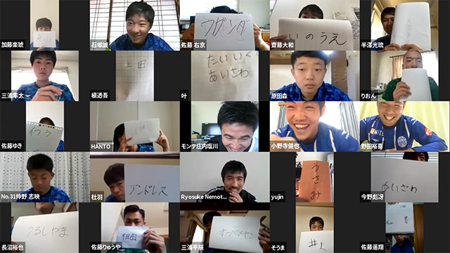 「世の中がこういう状況でストレスがたまっていると思いますが、練習も始まったらその思いをサッカーにぶつけて今後も頑張ってください。」