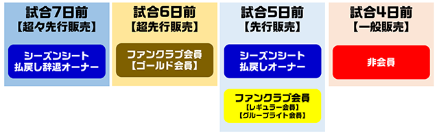 ※各先行販売日ごと、購入枚数の制限を設ける予定です。各試合のチケット販売概要とあわせてお知らせいたします。