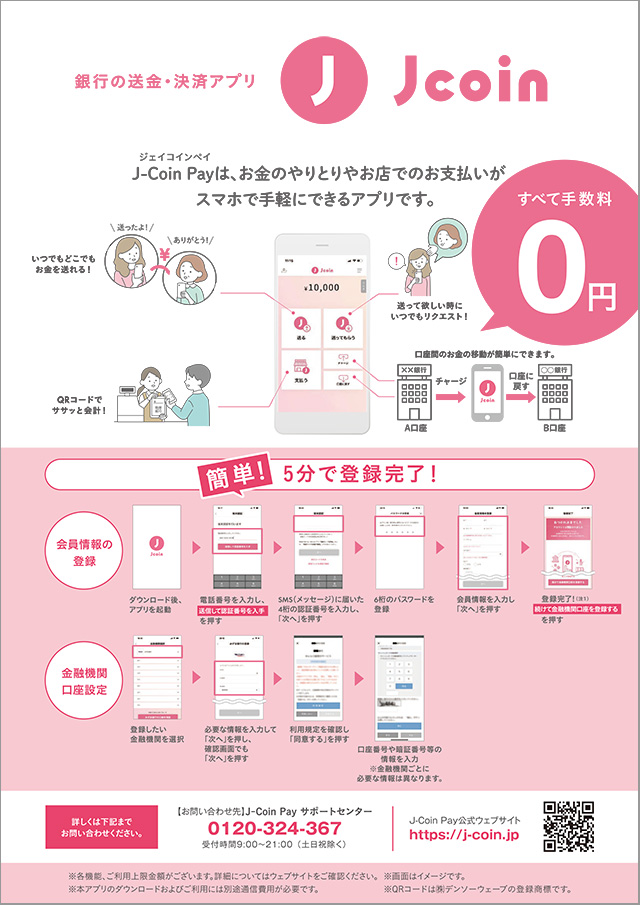 ・J-Coin Payの内容については、「J-Coin Payサポートセンター」までお問い合わせください。