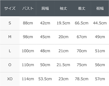 サイズ:S/M/L/O/XO
