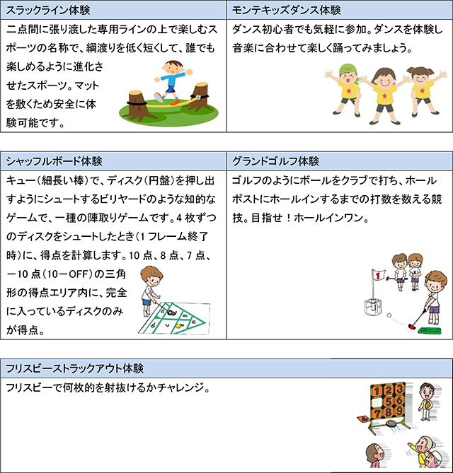 スタジアム前でニュースポーツや幅広い年代の方、ファミリーが手軽に楽しめるスポーツ体験会を行います。