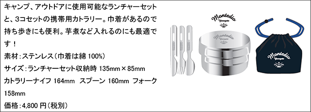 ・ソバ丼 ・多目丼 ・木椀 ・木皿 ・箸 ・バターナイフ ・サーモスリムボトル ・クリアプラボトル