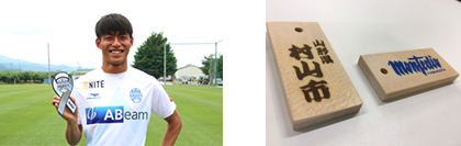 当日は村山市応援デーに伴い、リボンマグネット募金にご協力いただいたお客様へ、村山市×モンテディオ山形の「オリジナル木札も進呈いたします。