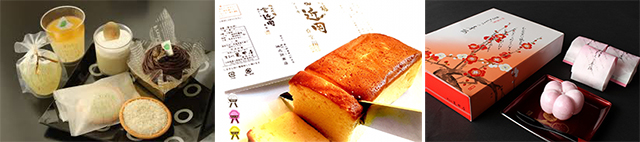 町内菓子盛り合わせ「タルト甚五右ヱ門」20個「やま富 近岡 酒ケーキ」4ロール「真室川音頭最中」12個入り2箱を贈呈いただきます。