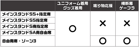 ※ビジターチームの鳴り物応援、横断幕、ゲートフラッグ等の掲出は「自由南席・ゾーン3」のみ可能です。