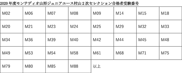 2020年度モンテディオ山形ジュニアユース村山2次セレクションにご参加いただきありがとうございました。