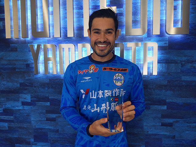 「この賞を頂いたことを神様、チームメイト、モンテディオ山形に関わる全てのスタッフ、そして家族、愛妻と愛娘に感謝の気持ちを申し上げたいと思います。みなさんの支えなければこの受賞できなかったと思います。