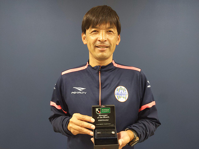 「このたび、2020明治安田生命J2リーグ10月「月間優秀監督賞」の栄誉にあずかり、Jリーグを支えていただいているすべてのみなさまに心よりお礼申し上げます。連戦の続く中でも、支えていただいているファン・サポーター、スポンサーの皆様のご声援を背に選手・スタッフ・フロントが一丸になることでいただいた賞だと思います。