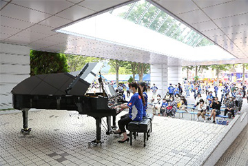 総合体育館玄関前に設置されたスポーツピアノを自由に演奏してください。