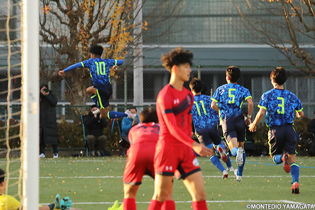 コーナーキックでごちゃごちゃってなって、(梅津)光がちょんと出してくれたボールをダイレクトで打ちました。前節のBB秋田戦も守備陣が頑張ってくれていたんですけど、攻撃陣が決めることができなくて最後に負けてしまったので、攻撃陣は、この一週間ずっと練習中に俺らが決めてチームを勝たせて全国に連れて行こうという話はずっとしていました。最後は気持ちで押し込んだ形でした。