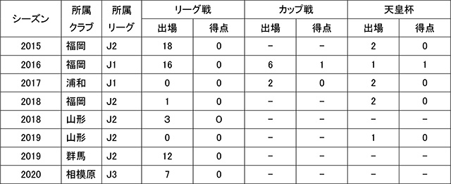 ※福岡大学在籍時に天皇杯9試合出場0得点