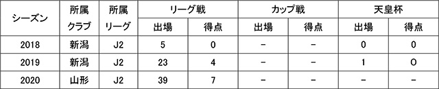 経歴:前橋育英高-早稲田大-インゴルシュタットII-インゴルシュタット04-アルビレックス新潟-モンテディオ山形