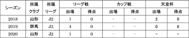 経歴:柏レイソルU-12-柏レイソルU-15-柏レイソルU-18-青森山田高-モンテディオ山形-ザスパクサツ群馬-モンテディオ山形