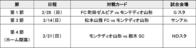 公開日 2021.01.12 ホーム開幕は3月21日!2021明治安田生命J2リーグ 開幕戦決定のお知らせ 2021明治安田生命J2リーグの各クラブホーム開幕カードが、下記の通り決定いたしました。 なお、ホーム開幕戦は、3月21日(日)開催の栃木SC戦(会場:NDソフトスタジアム山形)です。 キックオフ時刻、TV放送等の詳細を含む情報は、2021年1月22日(金)にJリーグより発表いたします。 #チーム ニュース一覧